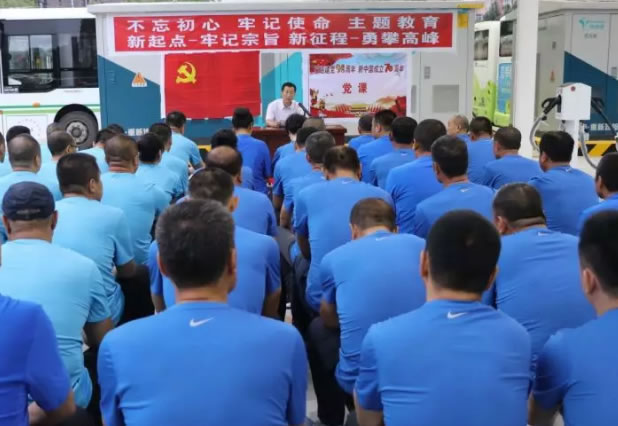 為進(jìn)一步深入學(xué)習(xí)貫徹黨的十九大精神和習(xí)近平總書記重要講話和重要指示精神,按照市委和市交通運(yùn)輸黨組的統(tǒng)一部署,公汽公司黨支部在新落成的公交新能源充電站舉辦了“不忘初心 牢記使命”主題教育活動(dòng),喜迎建黨98周年,為新中國成立70周年獻(xiàn)禮。公司黨支部書記楊維旭以“新起點(diǎn)—牢記使命 新征程—勇攀高峰”為題,為公司全體黨員及優(yōu)勝員工講了一堂專題黨課。