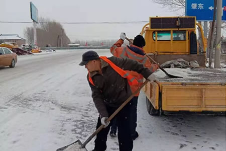 中心充分發(fā)揮除雪機(jī)械優(yōu)勢,采用梯隊(duì)漸次推進(jìn)方式,力爭最短時(shí)間內(nèi)清除積雪,保障車輛順暢通行;養(yǎng)護(hù)人員全力清除橋梁、急彎陡坡等路段積雪,并撒布防滑料,保障重點(diǎn)路段行車安全。